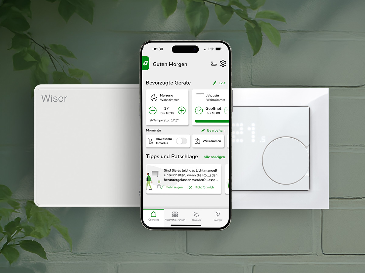 Entdecken Sie weitere Produkte, die Sie im Installationsalltag unterstützen: Das nachhaltige und stilvolle M-Pure Ocean Plastic Schalterdesign, das in Kombination mit dem Wiser Smart Home System für mehr Nachhaltigkeit, Komfort und Energieeffizienz im Gebäude sorgt.